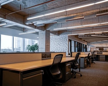 A professional office with open layout and natural light.